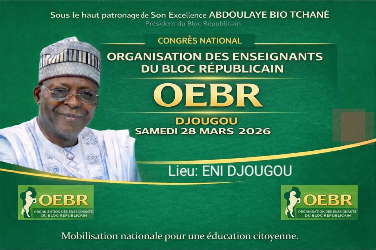 Sous le haut patronage de Abdoulaye Bio Tchané, l’Organisation des Enseignants du Bloc Républicain (OEBR) ouvre ce samedi 28 mars 2026 son congrrès national à l’École Normale d’Instituteurs de Djougou. Cette rencontre stratégique intervient au deuxième jour de la campagne pour l’élection présidentielle, dans un contexte de forte mobilisation politique. Elle rassemble des enseignants militants venus de plusieurs départements du pays, déterminés à renforcer leur engagement au sein du Bloc Républicain et à affirmer leur rôle dans la dynamique électorale en cours.